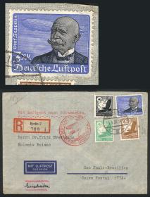 74 ALEMANIA - HISTORIA POSTAL Sobre / N°Cat.: Michel 539y Valor de catál.: Euros 1.000 Buena Sobre franqueado con Michel 539y (rayado horizontal) + otros, enviado el 4/MAR/1936 de Berlin a Brasil, buena calidad, valor de catálogo Michel Euros 1.000, baja base! Precio inicial: US$ 100 Precio actual: US$ 100 Oferte US$ 100 o más | |