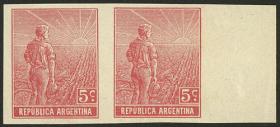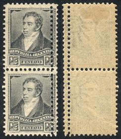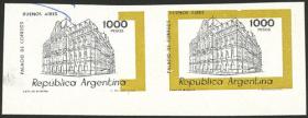 198 ARGENTINA - EMISIONES GENERALES Multiplo / Nuevo Mint N°Cat.: GJ.1850P Valor de catál.: US$300 MB. GJ.1850P, 1979/82 1000P. Teatro Colón, pareja SIN DENTAR, el de la izquierda con ausencia parcial del color ocre, rarísima, nueva mint, excelente! (tiene unas marcas en tinta, posiblemente porque quisieron descartarla anulándola) Precio inicial: US$ 200 Precio actual: US$ 200 Oferte US$ 200 o más | |