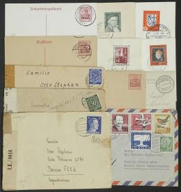 82 ALEMANIA - HISTORIA POSTAL Sobre / N°Cat.: Buena-MB 32 Sobres o tarjetas circulados entre 1946 y 1951, se ven franqueos muy interesantes, muy buena calidad general, oportunidad! ATENCIÓN: recomiendo mirar TODAS las fotos de este lote, ya que todos los sobres incluídos están escaneados! Precio inicial: US$ 50 Precio actual: US$ 50 Oferte US$ 56 o más | |