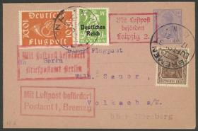 60 ALEMANIA - HISTORIA POSTAL Sobre / N°Cat.: Buena-MB 8 Tarjetas o enteros postales circulados entre 1892 y 1932 y 3 EP matasellados de favor, incluye envíos desde barcos en navegación, Levante, algún vuelo antiguo, etc., muy buen conjunto! IMPORTANTE: Recomiendo mirar TODAS las fotos de este lote, todo su contenido está escaneado de ambos lados.- Precio inicial: US$ 75 Precio actual: US$ 75 Oferte US$ 75 o más | |