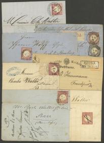 58 ALEMANIA - HISTORIA POSTAL Sobre / N°Cat.: Buena 4 Sobres + 3 frentes de sobres circulados entre 1869 y 1887, todos certificados y con atractivos franqueos y marcas postales, calidad variable (algunos con defectos, otros de MB calidad), baja base! IMPORTANTE: Recomiendo mirar TODAS las fotos, todos los sobres están escaneados! Precio inicial: US$ 50 Precio actual: US$ 50 Oferte US$ 50 o más | |
