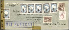 173 ARGENTINA - EMISIONES GENERALES Sobre / N°Cat.: GJ.770 MB. RARO FRANQUEO MÚLTIPLE: GJ.770, 1P. mapa impreso sobre PAPEL TIZADO, 6 ejemplares (+ otros sellos, total 6,25P.) franqueando un sobre aéreo enviado el 23/AGO/1943 de Bs.Aires a USA, MB calidad, raro! Precio inicial: US$ 100 Precio actual: US$ 100 Oferte US$ 100 o más | |