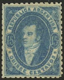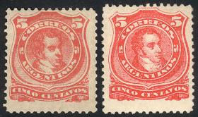 138 ARGENTINA - CABECITAS Lote / Sin usar (sin goma) N°Cat.: GJ.17 Valor de catál.: US$200 Buena-MB GJ.17, Impresiones borrosas o muy borrosas, bonito lote de 5 ejemplares nuevos con COLORES MUY DISTINTOS, en general de muy buena calidad (alguno puede tener algún ínfimo defectito), muy bonito! Precio inicial: US$ 50 Precio actual: US$ 50 Oferte US$ 50 o más | |