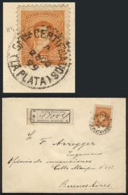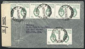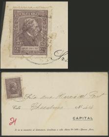 174 ARGENTINA - EMISIONES GENERALES Sobre / N°Cat.: GJ.771 MB. RARO SELLO EN CARTA: GJ.771, 2P. Frutas impreso sobre PAPEL TIZADO + otros (pareja GJ.770, etc., total 4,15P.) franqueando un sobre aéreo enviado el 28/DIC/1943 de Bs.Aires a USA, MB calidad! Precio inicial: US$ 60 Precio actual: US$ 60 Oferte US$ 60 o más | |