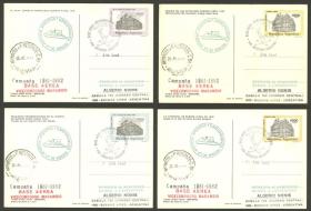 122 ANTÁRTIDA ARGENTINA - HISTORIA POSTAL Entero postal / N°Cat.: MB. Base Aérea Teniente MATIENZO, tarjetas (EP) GJ.98/101 circuladas con marcas especiales y fechador de la Base 7/ENE/1982, etc., MB calidad. Valor de las 4 tarjetas usadas US$200, oportunidad! Precio inicial: US$ 50 Precio actual: US$ 50 Oferte US$ 50 o más | |