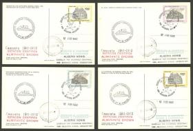 126 ANTÁRTIDA ARGENTINA - HISTORIA POSTAL Entero postal / N°Cat.: MB. Base de Ejército ESPERANZA, tarjetas (EP) GJ.98/101 circuladas con marcas especialesy fechador de la Base 1/OCT/1982, etc., MB calidad. Valor de las 4 tarjetas usadas US$200, oportunidad! Precio inicial: US$ 50 Precio actual: US$ 50 Oferte US$ 50 o más | |