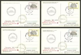125 ANTÁRTIDA ARGENTINA - HISTORIA POSTAL Entero postal / N°Cat.: MB. Base de Ejército GRAL. BELGRANO II, tarjetas (EP) GJ.98/101 circuladas con marcas especiales y fechador de la Base 9/JUL/1982, etc., MB calidad. Valor de las 4 tarjetas usadas US$200, oportunidad! Precio inicial: US$ 50 Precio actual: US$ 50 Oferte US$ 50 o más | |