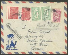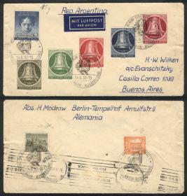 98 ALEMANIA - BERLÍN - EMISIONES GENERALES Sobre / N°Cat.: Yvert 68/72+73 Valor de catál.: Euros 150+ MB. Sobre aéreo enviado el 14/JUN/1952 a Argentina, franqueado con Yvert 68/72 + 73 + otras al dorso, con lindo matasello especial de una Exposición de TRENES, valor de catálogo de los sellos (como usados) Euros 150, muy bonito! Precio inicial: US$ 40 Precio actual: US$ 40 Oferte US$ 40 o más | |