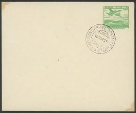 70 ALEMANIA - HISTORIA POSTAL Sobre / N°Cat.: Buena-MB 22/MAY/1933 Tarjeta con vista del avión DO.X. enviada a Argentina con franqueo de 15 Pg. con matasello de tren. Además tiene una atractiva marca color rosa: "FLUGSCHIEFF Do.X. - EUROPAFLUG 1933", muy atractiva! Precio inicial: US$ 25 Precio actual: US$ 25 Oferte US$ 25 o más | |