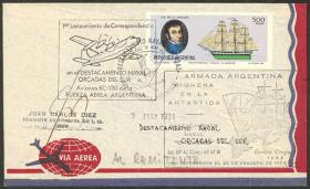 120 ANTÁRTIDA ARGENTINA - HISTORIA POSTAL Sobre / N°Cat.: MB. Sobre transportado en el vuelo especial de la Base Antártica V.Com. MARAMBIO del 28/SEP/1971, realizado con Avión Hércules C130 para el RESCATE DE 2 ENFERMOS INGLESES, excelente calidad, raro! Precio inicial: US$ 50 Precio actual: US$ 50 Oferte US$ 50 o más | |