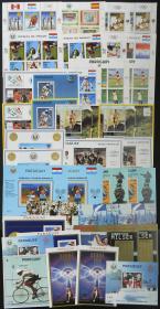 12 TEMA DEPORTES - LOTES Y COLECCIONES Bloque conmemorativo / Nuevo Mint N°Cat.: MB. PARAGUAY: Sobre con 37 blocks y mini-hojitas muy atractivas (2 con sobrecarga MUESTRA), todo nuevo mint y de muy buena calidad general. Los bloques son todos diferentes, algunos similares entre sí tiene diferente goma (brillante y "tropical"), o series distintas (A y B), alto valor de catálogo, baja base! IMPORTANTE: Recomiendo mirar TODAS las fotos de este lote, todo su contenido está escaneado. Precio inicial: US$ 120 Precio actual: US$ 120 Oferte US$ 120 o más | |