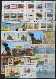 28 TEMA MEDIOS DE TRANSPORTE - LOTES Y COLECCIONES Bloque conmemorativo / Nuevo Mint N°Cat.: MB. PARAGUAY: Sobre con 26 blocks y mini-hojitas muy atractivas (algunos con sobrecarga MUESTRA), todo nuevo mint y de muy buena calidad general, incluye barcos, trenes, autos, Zeppelin, etc.. Los bloques son todos diferentes, algunos similares entre sí tiene diferente goma (brillante y "tropical"), o series distintas (A y B), alto valor de catálogo, baja base! IMPORTANTE: Recomiendo mirar TODAS las fotos de este lote, todo su contenido está escaneado. Precio inicial: US$ 100 Precio actual: US$ 100 Oferte US$ 100 o más | |