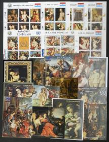 30 TEMA PINTURAS, RELIGIÓN - LOTES Y COLECCIONES Bloque conmemorativo / Nuevo Mint N°Cat.: MB. PARAGUAY: Sobre con 20 blocks y mini-hojitas muy atractivas, todo nuevo mint y de muy buena calidad general. Los bloques son todos diferentes, algunos similares entre sí tiene diferente goma (brillante y "tropical"), o series distintas (A y B), alto valor de catálogo, baja base! IMPORTANTE: Recomiendo mirar TODAS las fotos de este lote, todo su contenido está escaneado. Precio inicial: US$ 80 Precio actual: US$ 80 Oferte US$ 80 o más | |