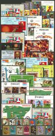 19 TEMA FÚTBOL - BLOCKS Bloque conmemorativo / Nuevo Mint N°Cat.: MB. PARAGUAY: Sobre con 22 blocks y mini-hojitas muy atractivas, además algunos sellos y series, todo nuevo mint y de muy buena calidad general, algunos con sobrecarga MUESTRA. Los bloques son todos diferentes, algunos similares entre sí tiene diferente goma (brillante y "tropical"), o series distintas (A y B), alto valor de catálogo, baja base! IMPORTANTE: Recomiendo mirar TODAS las fotos de este lote, todo su contenido está escaneado. Precio inicial: US$ 100 Precio actual: US$ 100 Oferte US$ 100 o más | |