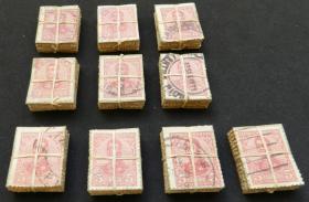 162 ARGENTINA - EMISIONES GENERALES Lote / Usado N°Cat.: GJ.280 o 292 Buena-MB GJ.280 o 292, 1908/9 5c. San Martín en óvalo, 1.000 estampillas usadas en 10 paquetitos de 100 cada uno, preparados por un lavador serial de correspondencia en el año 1945!, totalmente SIN REVISAR, seguramente quien lo haga encontrará buenos matasellos y tal vez alguna variedad de interés, oportunidad, baja base, valor de catálogo de 1000 sellos comunes: US$300! Precio inicial: US$ 25 Precio actual: US$ 25 Oferte US$ 25 o más | |