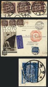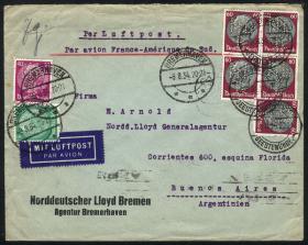 69 ALEMANIA - HISTORIA POSTAL Error / N°Cat.: Buena-MB Frente de sobre con lindo membrete: Nord Deutscher Lloyd, enviado vía ZEPPELIN el 24/OCT/1932 de Bremen a Argentina, franqueado con 3,25Mk., todos los sellos tienen un interesante PERFIN "NDL", muy atractivo! Precio inicial: US$ 50 Precio actual: US$ 50 Oferte US$ 50 o más | |