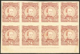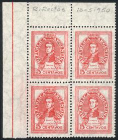 177 ARGENTINA - EMISIONES GENERALES Cuadro / Nuevo Mint N°Cat.: GJ.882 Valor de catál.: US$480 MB. GJ.882, 5c. San Martín con filigrana SOL CON RAYOS RECTOS, cuadro esquina de hoja, nuevo mint (mínima marquita de bisagra en el borde de hoja), lujo excepcional! Precio inicial: US$ 300 Precio actual: US$ 300 Oferte US$ 300 o más | |