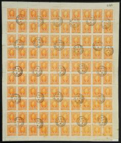 155 ARGENTINA - EMISIONES GENERALES Multiplo / Nuevo Mint N°Cat.: GJ.134 Valor de catál.: US$90+ MB. GJ.134, 1890 Provisorio con sobrecarga roja, PLIEGO COMPLETO de 100 ejemplares nuevos mint, excelente calidad (tiene 4 marquitas de bisagra en el borde de hoja), raro en este excepcional calidad! Precio inicial: US$ 50 Precio actual: US$ 50 Oferte US$ 50 o más | |