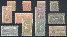 238 GRECIA - EMISIONES GENERALES Serie / Nuevo con bisagra N°Cat.: Sc.117/128 Valor de catál.: US$1.784 MB. Sc.117/128, 1896 Primeros Juegos Olímpicos de la era moderna, serie completa de 12 valores nuevos (con restos de bisagra), muy buena calidad, valor de cat. Scott US$1.784 Precio inicial: US$ 600 Precio actual: US$ 600 Oferte US$ 600 o más | |