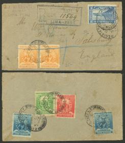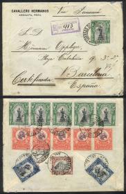 349 PERÚ - HISTORIA POSTAL Sobre / N°Cat.: MB. 19/ABR/1908 Arequipa - España, sobre certificado con bonito franqueo al frente y dorso (total 36c., 2 centavos por encima de la tarifa correspondiente de 24c. de doble porte + 10c. de certificación), excelente calidad! Precio inicial: US$ 100 Precio actual: US$ 188 Oferte US$ 207 o más | |