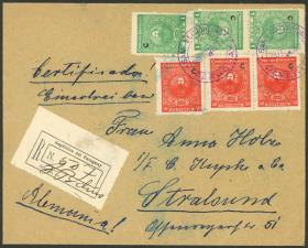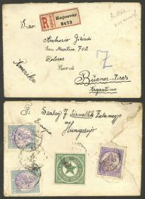 244 HUNGRÍA - HISTORIA POSTAL Sobre / N°Cat.: MB. 15/MAR/1924 KAPOSVAR - Argentina, sobre certificado con atractivo franqueo de 5.000k. al dorso, también tiene una linda viñeta "ESPERANTO", con matasellos de arribo a destino el 15/ABR, MB calidad! Precio inicial: US$ 100 Precio actual: US$ 100 Oferte US$ 100 o más | |