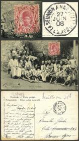 396 ZANZIBAR - HISTORIA POSTAL Sobre / N°Cat.: MB. 27/JUN/1908 Zanzibar - ARGENTINA: Tarjeta postal con vista: "Native Christians" franqueada con Sc.101 (6c. carmín), al dorso tiene marca octogonal "LA REUNION A MARSEILLE 1º - L.U.Nº2", muy raro destino! Precio inicial: US$ 100 Precio actual: US$ 100 Oferte US$ 100 o más | |