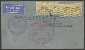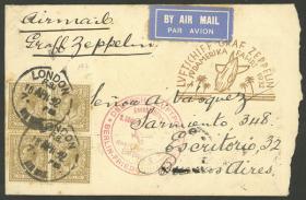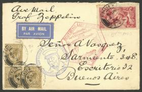 234 GRAN BRETAÑA - HISTORIA POSTAL Sobre / N°Cat.: MB. VUELO ZEPPELIN: Sobre franqueado con 4s. y enviado de London a Argentina el 5/MAY/1933, con marcas del vuelo de alcance de Berlin en rojo y azul del "1º vuelo a Sudamérica", al dorso arribo a Buenos Aires, muy buena calidad! Precio inicial: US$ 150 Precio actual: US$ 150 Oferte US$ 150 o más | |