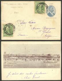 348 PERÚ - HISTORIA POSTAL Entero postal / N°Cat.: MB. Rara tarjeta (entero postal) de 2c. CON VISTA IMPRESA AL DORSO (ciudad de Iquitos, barcos) + franqueo adicional de 2c. y enviada de Lima a Francia el 25/SEP/1901, con arribo a destino el 26/OCT, excelente calidad! Precio inicial: US$ 250 Precio actual: US$ 250 Oferte US$ 250 o más | |