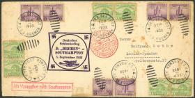 215 ESTADOS UNIDOS - HISTORIA POSTAL Sobre / N°Cat.: Aceptable-Buena VUELO CATAPULTADO: espectacular sobre con motivos nazis, con atractivo franqueo de 24c., 12 sellos matasellados "U.S. GER. SEA POST - S.S. BREMEN - 4/SEP/1933", volado hacia Berlin via Southampton el 5/SEP, con arribo a destino al dorso un día más tarde, con defectitos pero muy bonito! Precio inicial: US$ 100 Precio actual: US$ 100 Oferte US$ 100 o más | |
