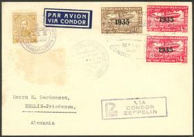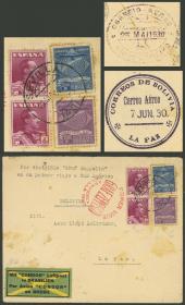 205 ESPAÑA - HISTORIA POSTAL Sobre / N°Cat.: Buena-MB 16/MAY/1930 Sevilla - Rio de Janeiro - Bolivia, sobre volado por ZEPPELIN, con franqueo mixto (España + Brasil), llegó a Río el 25/MAY/1930 y de allí fue transportado a La Paz por el Syndicato Condor (marca de arribo al dorso el 7/JUN), raro! Precio inicial: US$ 250 Precio actual: US$ 250 Oferte US$ 250 o más | |