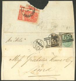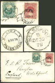 330 PERÚ - HISTORIA POSTAL Sobre / N°Cat.: MB. 2/NOV/1879 IQUIQUE (aún peruana) a Inglaterra, sobre franqueado con 30c., al dorso tiene tránsito por Lima 8/NOV y arribo a destino el 29/DIC, muy buen calidad, enviado en tiempos de la Guerra con Chile, interesante! Precio inicial: US$ 250 Precio actual: US$ 250 Oferte US$ 250 o más | |