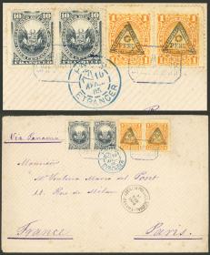 337 PERÚ - HISTORIA POSTAL Sobre / N°Cat.: MB. MARZO/1885 SALAVERRY a Paris, vía Panamá: Sobre franqueado con porte doble de 22c. con 2 espectaculares matasellos "SALAVERRY" en color azul, rara marca de tránsito "AGENCIA POSTAL NACIONAL - PANAMÁ" del 8/MAR, al dorso tránsito por New York el 30/MAR y arribo a Paris (al frente) el 10/ABR, muy buena calidad y espectacular! Precio inicial: US$ 500 Precio actual: US$ 500 Oferte US$ 550 o más | |