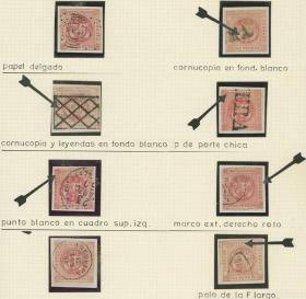 319 PERÚ - EMISIONES GENERALES Lote / Usado N°Cat.: Sc.4 Valor de catál.: US$1280+ Buena-MB Sc.4 (Yvert 3A), 1858 1P. roja, hoja de una antigua colección con 8 sellos usados de buena a muy buena calidad, al menos 7 con variedades descriptas, muy atractiva! Precio inicial: US$ 500 Precio actual: US$ 500 Oferte US$ 500 o más | |