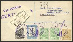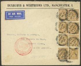 235 GRAN BRETAÑA - HISTORIA POSTAL Sobre / N°Cat.: MB. ALTO FRANQUEO: Sobre aéreo enviado el 26/ABR/1935 de Manchester a Argentina con franqueo de 8S. y enviado vía Alemania DLH. Al dorso tiene marca de arribo a Buenos Aires (numeral), MB calidad! Precio inicial: US$ 100 Precio actual: US$ 100 Oferte US$ 100 o más | |