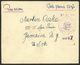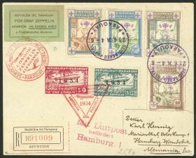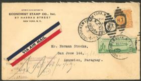 216 ESTADOS UNIDOS - HISTORIA POSTAL Sobre / N°Cat.: MB. Sobre enviado por vía aérea desde New York a Paraguay el 10/OCT/1935, franqueado originalmente solo con 6c. y devuelto al remitente con marca violeta indicando la falta de 49c. para completar la tarifa, al día siguiente el remitente agregó un sello de 50c. Zeppelin (Yvert 17), llegando a Asunción el 22/OCT, MB calidad y muy atractivo! Precio inicial: US$ 100 Precio actual: US$ 100 Oferte US$ 100 o más | |