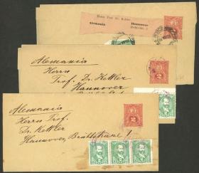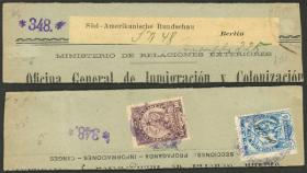 295 PARAGUAY - HISTORIA POSTAL Sobre / N°Cat.: MB. SERVICIO OFICIAL: Faja que contenía impresos de la Oficina General de Inmigración y Colonización, enviada a Alemania (circa 1904) con franqueo de 15c. con sellos de servicio oficial, muy buena calidad y muy rara, ex-Loeb (su precio de venta: US$250) Precio inicial: US$ 150 Precio actual: US$ 150 Oferte US$ 150 o más | |