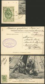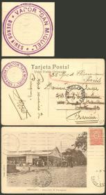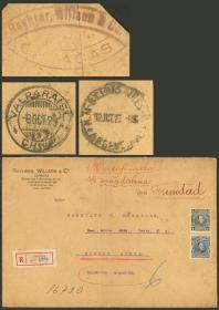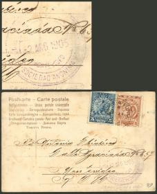 296 PARAGUAY - HISTORIA POSTAL Sobre / N°Cat.: MB. ESTAFETA FLUVIAL: Tarjeta postal enviada el 2/ABR/1905 de Asunción a Montevideo con franqueo de 15c. con matasello "ESTAFETA FLUVIAL", y marca violeta "NAVEGACION A VAPOR - NICOLAS MIHANOVOCH - MONTEVIDEO - SOCIEDAD ANONIMA", MB y muy raro. Ex-Loeb (su precio de venta: US$750) Precio inicial: US$ 500 Precio actual: US$ 500 Oferte US$ 500 o más | |
