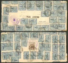 207 ESPAÑA - HISTORIA POSTAL Sobre / N°Cat.: MB. PIEZA MÁXIMA?: Sobre aéreo enviado el 29/OCT/1938 a Argentina con remitente "Embajada de los Estados Unidos Mexicanos", con un impresionante franqueo de 126 Pesetas que incluye 58 sellos de 2P. "helicóptero" (Sc.C72B) + 10Ptas. "Puerta del Sol", con arribo a Buenos Aires el 9/NOV, muy buena calidad, espectacular! Precio inicial: US$ 250 Precio actual: US$ 250 Oferte US$ 250 o más | |