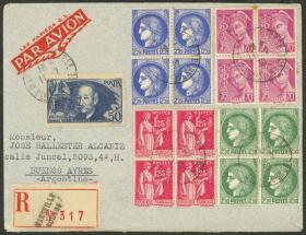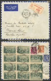 225 FRANCIA - HISTORIA POSTAL Sobre / N°Cat.: MB. 23/DIC/1939 Marseille-Prado a Argentina, sobre aéreo certificado, franqueado al dorso con 223,25Fr., con marca de arribo a Buenos Aires (numeral, sin fecha), muy buena calidad, espectacular! Precio inicial: US$ 200 Precio actual: US$ 200 Oferte US$ 200 o más | |