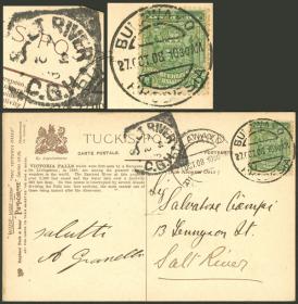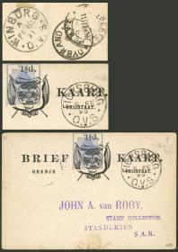 278 ORANGE RIVER COLONY - HISTORIA POSTAL Sobre / N°Cat.: Buena-MB Tarjeta (EP) de 1½p. enviada el 4/MAY/1896 de "P K LINDLEY" a Inglaterra, con tránsitos por Bloemfontein (6/MAY) + otro poco legible, con el nombre del destinatario borrado, muy atractiva! Precio inicial: US$ 100 Precio actual: US$ 100 Oferte US$ 100 o más | |