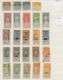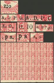 386 TURQUÍA - FISCALES Multiplo / Nuevo Mint N°Cat.: MB. Gran bloque de 45 estampillas antiguas de 2p. con sobrecarga "A.D.P.O. - Z.O. - P.S.0,10" con variedades: "coma en vez de punto", "Punto antes de la P", "P.S. sin puntos", "Sobrecarga muy desplazada (P.S. 0,1)", varios con "letras rotas o incompletas", etc etc., nuevos mint, muy buena calidad! Precio inicial: US$ 200 Precio actual: US$ 200 Oferte US$ 200 o más | |