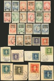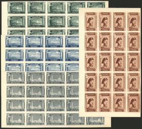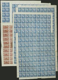 369 RUMANIA - LOTES Y COLECCIONES Lote / Nuevo Mint N°Cat.: MB. Lote de hojas completas de sellos de tasa con imagen del Rey Mihai I, hojas completas dentadas y sin dentar, idem con sobrecarga "PRIN AVION" en color rojo, todas estas con goma y nuevas mint. Además, 3 hojas impresas en un papel amarillento sin goma (parecen pruebas), dentada con sobrecarga negra "PRIN AVION" y sin dentar con y sin sobrecarga. En total son 7 hojas completas de excelente calidad, interesantes! Precio inicial: US$ 100 Precio actual: US$ 100 Oferte US$ 111 o más | |