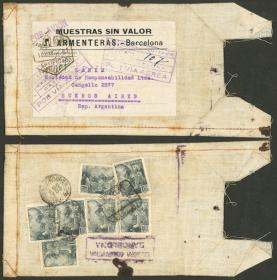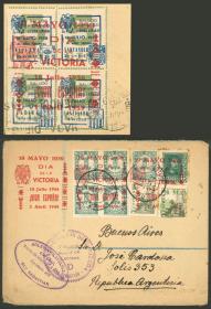 208 ESPAÑA - HISTORIA POSTAL Sobre / N°Cat.: Buena-MB 20/MAY/1939 San Sebastián a Argentina, sobre franqueado al frente y dorso con sellos sobrecargados "DIA DE LA VICTORIA", con marca de censura al frente y arribo a Buenos Aires al dorso, el 22/JUN, muy interesante! Precio inicial: US$ 100 Precio actual: US$ 100 Oferte US$ 100 o más | |