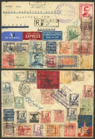 206 ESPAÑA - HISTORIA POSTAL Sobre / N°Cat.: MB. 11/SEP/1937 Bilbao a Panamá, sobre aéreo certificado y expreso, tapizado de franqueo al frente y dorso con cantidad de sellos y viñetas varias, con marca de censura, tránsito por New York el 20/SEP y arribo a Panamá el 30, muy buena calidad, espectacular!! Precio inicial: US$ 100 Precio actual: US$ 100 Oferte US$ 100 o más | |