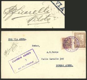 308 PARAGUAY - HISTORIA POSTAL Sobre / N°Cat.: MB. 1/ENE/1929 Asunción a Buenos Aires, vuelo experimental de la Cie. Gral. Aeropostale con destino final GENERAL ALVEAR (inusual!), al dorso tiene arribo a Buenos Aires el 2/ENE y a General Alvear al día siguiente, excelente calidad! Precio inicial: US$ 250 Precio actual: US$ 250 Oferte US$ 250 o más | |