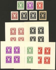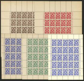 352 POLONIA - EMISIONES LOCALES Lote / Nuevo Mint N°Cat.: Buena-MB DACHAU: 5 hojas completas de 25 sellos cada una, TODAS DISTINTAS, nuevas mint (2 con leves defectos de goma, la de 25Pf. azul impresa en papel blanco es emitida sin goma), muy buena calidad general, raro conjunto!! Precio inicial: US$ 100 Precio actual: US$ 188 Oferte US$ 207 o más | |