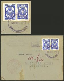 353 POLONIA - EMISIONES LOCALES Sobre / N°Cat.: MB. Sobre enviado el 30/OCT/1945 a Argentina con franqueo de 50Pf. con matasello "Polish Committee Munich", al dorso tiene marca de arribo a Buenos Aires "numeral, sin fecha", MB calidad! Precio inicial: US$ 100 Precio actual: US$ 100 Oferte US$ 100 o más | |