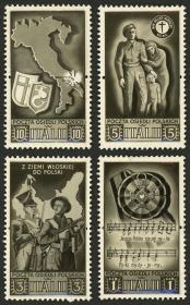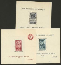 361 POLONIA - CUERPO POLACO - EMISIONES GENERALES Multiplo / Sin usar (sin goma) N°Cat.: MB. Emisión de 4 valores del año 1946, bloques de 20 sellos SIN DENTAR. En el valor de 45Gr. uno con variedad "Con acento sobre la N de CASSINO", emitidos sin goma, excelente calidad, raros!! Precio inicial: US$ 500 Precio actual: US$ 500 Oferte US$ 500 o más | |