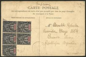 380 SURINAME - HISTORIA POSTAL Sobre / N°Cat.: MB. RARO DESTINO, matasello de barco: Tarjeta postal con vista de "Inmigrantes de Java con instrumentos musicales" franqueada con 2½c. y enviada a Argentina el 1/MAR/1909, con matasellos de vapor holandés, muy buena calidad! Precio inicial: US$ 100 Precio actual: US$ 100 Oferte US$ 100 o más | |