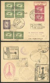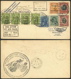 201 ECUADOR - HISTORIA POSTAL - VUELOS Sobre / N°Cat.: MB. Sobre volado el 15/MAY/1930 en el vuelo militar Latacunga-Ambato en avión militar, llegando a Ambato por vía aérea el 15/MAY y de allí transportado por ferrocarril a Guayaquil (arribó el 17/MAY), y luego fué transportado en el vuelo GUAYAQUIL - MARACAIBO (llegó allí el 3/JUN) y finalmente viajó a Caracas, arribando el 8/JUN, muy buena calidad, atractiva combinación de vuelos! Precio inicial: US$ 200 Precio actual: US$ 200 Oferte US$ 200 o más | |